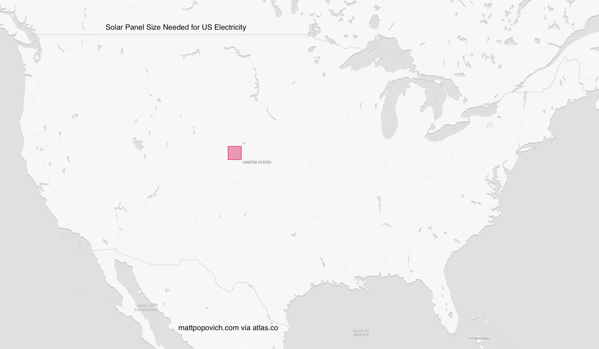 The US is ~3.8 million square miles. So this would be 0.13% of the US’s land area… to power the whole country’s electricity.