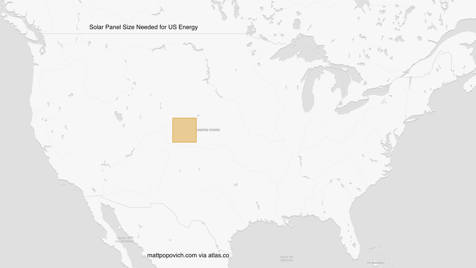 What do you think? Is that more or less solar panel area than you expected? I feel like the land area is quite small in the grand scheme of things. Covering 0.13% of the US’s land area to power the whole country’s electricity seems like a great deal to me.
