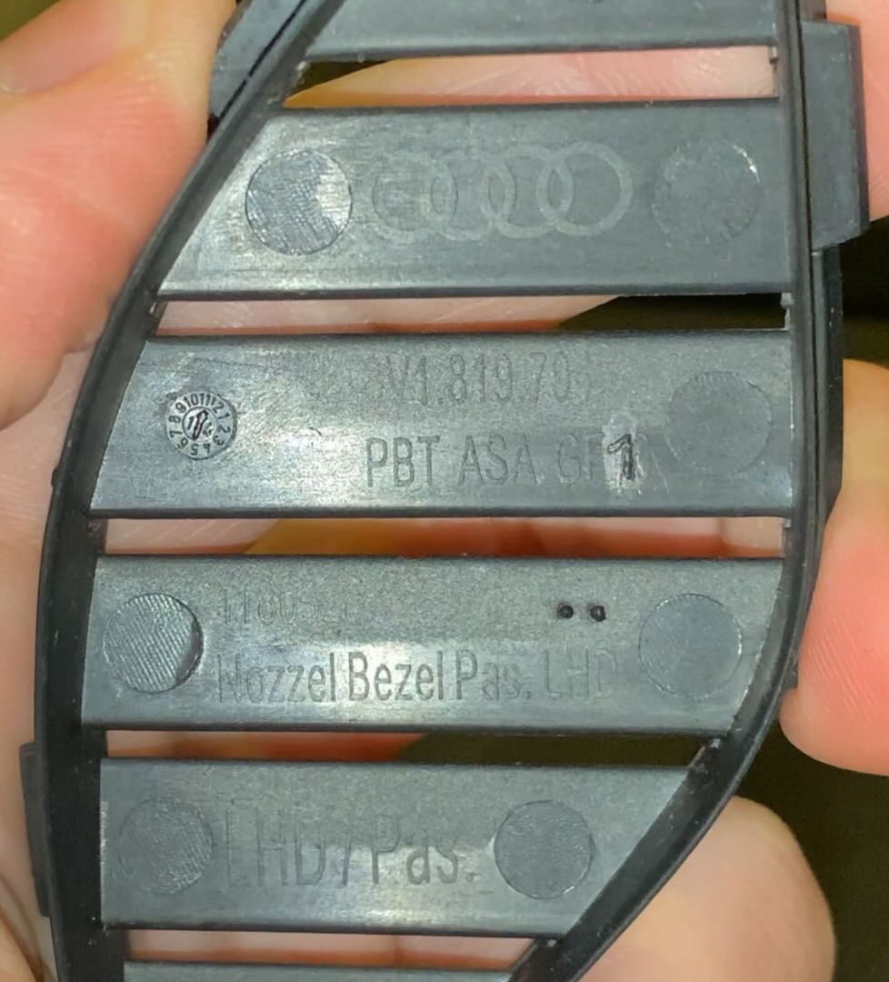 - Audi OEM Parts Online.com: driver vent, passenger vent (~$22 + ~$5 shipping = ~$30)